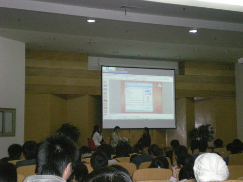 活动开始,主持人与场下志愿者互动并齐喊口号,接着三位嘉宾分别向台下志愿者讲述他们各自在汶川大地震后去四川支援的情况。台下的同学认真地听着、看着。特别是张海音老师,她身为一名心理咨询师,在四川帮助一位高三同学解决学习与情感矛盾问题的介绍,使志愿者们印象深刻。在活动的过程中还播放了由财神捕鱼