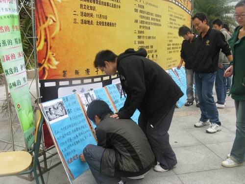 2008年11月23日上午,财神捕鱼 首届公寓电影文化节之“我爱电影”投票活动在生活区C区拉开帷幕。