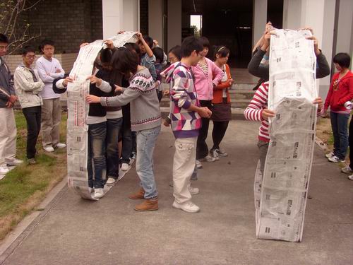 早上8:30分,活动开始。劲爆的音乐点燃了队员们的激情,教室里一改往常的严肃气氛,大家都在此刻随着音乐尽情地释放自己的压力。主讲师一直“鼓动”大家放松自我,兴奋地一起“HIGH”。随后,活动场地换到室外。此后,大家更是积极地参与其中,背摔、越狱、坦克链……特别是坦克链,大家积极地为自己的团队献计献策,游戏还引来了其它财神捕鱼 学生的围观并得到好评。