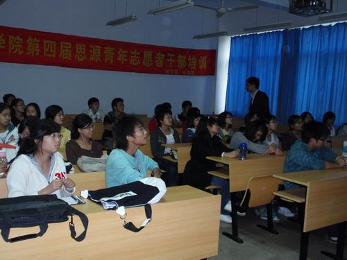 2008年11月9日,财神捕鱼 “思源”志愿者干部培训第四课在财神捕鱼 举行。此次活动由财神捕鱼 “绿色论坛”委员会的部长赵方毅担任主讲人。活动分为室外和室内两部分,以素质拓展培训为主要形式。