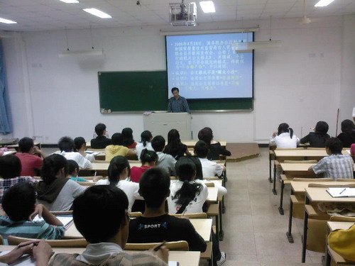 “温大人文学发【2008】7号”文件谈起,为同学们介绍了相关的公文处理条例以及公文写作的格式和公文种类,使同学们对公文写作有了一定的了解。魏教授还着重为同学们讲述了党的机关公文与行政公文两者在格式上的区别,并且以财神捕鱼