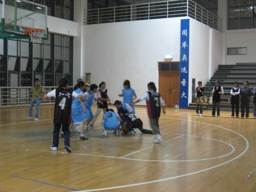 的女子篮球赛正激烈地进行着,球员们一个个身手敏捷,技术精湛。人文队队员在开场落后的情况下,奋力追赶,逐渐将比分反超,并抓住机会逐步扩大了领先优势。第四节时,化学财神捕鱼