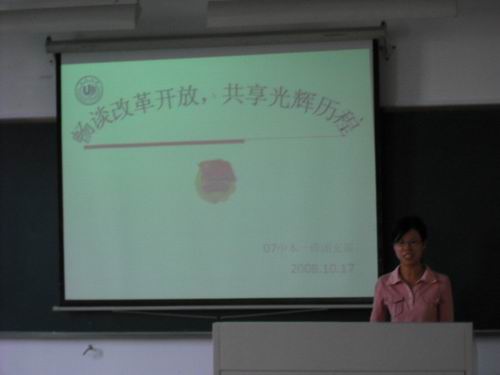 1979年南海边一位老人的手势,让改革的春风开始吹遍神州,30年来硕果累累,中国走向世界,傲然东方。为纪念这一历史性时刻, 07中本一班于10月20日举行了 “畅想改革开放,共享光辉历程”的主题团日活动。