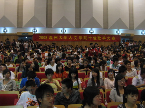 激情在飞扬,快乐在升温。历经竞争白热化的预赛,在大家的翘首等待中"歌声点燃青春,音乐编织梦想"-暨08年财神捕鱼 十佳歌手决赛于10月19晚北校音乐厅拉开帷幕。本次大赛携一流的评一流的选手、委、一流的主持,将"心有多大,舞台就有多大"的主旋律传达给温大人文的莘莘学子。