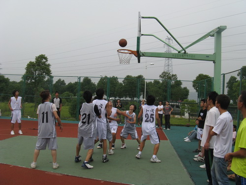 精彩的争球拉开了本场比赛的帷幕,顿时硝烟弥漫了整个篮球场,两队队员都奋力抢夺。人文队不懈努力,在比分落后的情况下毫不气馁,奋力拼搏,尽最大力量缩小比分差距,特别诗杨标等队员的精彩篮板球抢夺,赢得了现场观众的阵阵掌声。