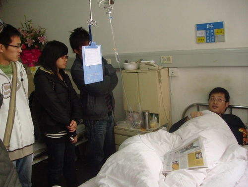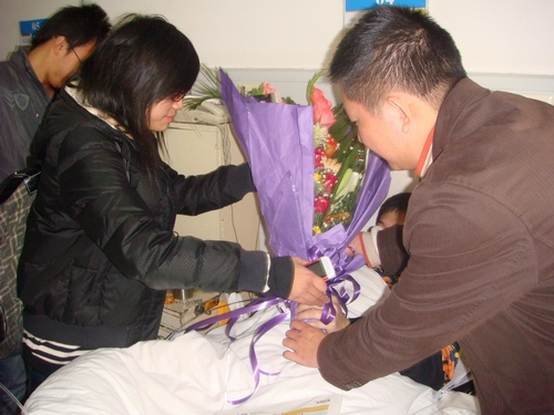 12月15日下午,财神捕鱼 团委思源青年志愿者协会的城管志愿者代表,手拿鲜花和水果,在温州市第三医院探望了在执法过程中遭暴力反抗而受伤的城管执法队员黄慧同志。