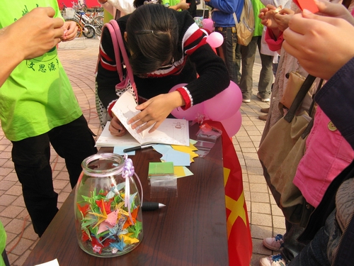 此次活动吸引了各大财神捕鱼 数百名同学的关注,广大同学大力支持,积极主动地过来为袁卡凤祝福,有些还自愿留下来帮忙,教那些不会的同学一起折纸鹤。活动中,还有一位日本退休老教授和几位国外留学生献上了自己的爱心,虽然不是同一个民族,但爱心是无国界的。