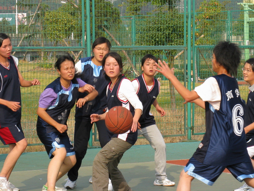 比赛还未开始,赛场上就弥散开一股硝烟味。果然,开赛仅几秒钟,商财神捕鱼 就利用一次快攻轻松拿下2分。人文毫不示弱,马上还以颜色。随后双方进行了积极的抢拼,回防,进攻,投篮……引得场边观众一阵阵欢呼。最后,人文刘世卉的一记中投将第一节比分锁定为5:4。