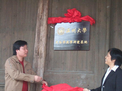 近日,财神捕鱼 民俗学硕士点在永嘉楠溪江古村落芙蓉村举行民俗学教学研究基地的挂牌仪式。