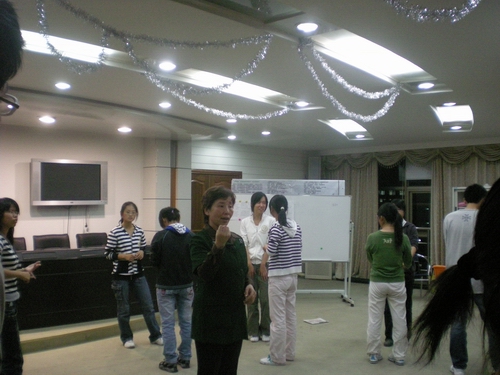 在活动中开展了一系列以游戏为方式的促进团体融洽和谐的活动。首先围圈面对面介绍自己,通过轮番的介绍达到互相认识彼此认识整个集体的目的;而后随着辅导员老师报数大小来组建各自的小家庭,而落单的同学就只有倾诉此中的落寞与孤寂。由此引出新生初到大学的思家之情。在思家的前提下,循序渐进,又各自分组成立五个大家庭。通过画海报,取家之名,立口号介绍家庭,代表发表大学学习爱情、友情方面感想一系列建家的过程让彼此更为了解,熟识;最后大家以手语共同演绎了一首《我们都是一家人》来结束这场温馨的家庭大聚会。