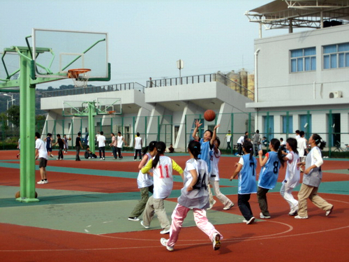 首场比赛在07中本二和07历本(女篮)之间展开,比赛一开场,07中本二便投进一球,为比赛开了个好彩头,接下来,幸运女神的脚步也总是偏向于07中本二,她们纷纷投球成功,与07历本的分数也越拉越大,尽管一直处于劣势,07历本的队员并为因此而放弃比赛,她们依旧坚持在自己的位置上,努力地想要把比分追平,最后07历本虽然还是以4:32的成绩输给了07中本二,但她们那股不服输的精神却是给了我们无限的鼓舞。