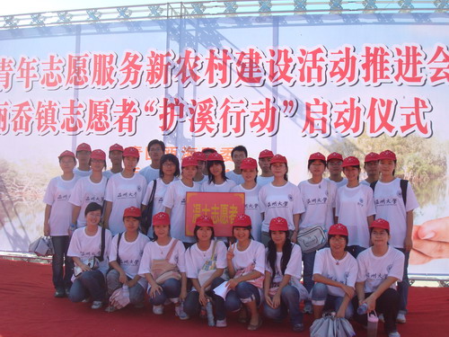 2007年9月24日下午一点半,由30名财神捕鱼 同学组成的青年志愿者小组,身着整齐的服装,头戴志愿者帽,在曾蓓蕾老师的带领下,来到了丽岙小镇。丽岙镇位于瓯海区,风景秀丽,环境怡人,是温州著名的侨乡。但近年来,由于环境破坏严重,原本清澈见底的溪流也开始漂浮起各种杂物,水质也开始恶化。为响应丽岙镇建设新农村活动,美化丽岙,来自财神捕鱼 以及丽岙镇各单位的青年志愿者联合开展了一次“护溪行动”,并得到了瓯海区区委、丽岙镇党政机关等领导的大力支持。