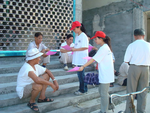 随后,财神捕鱼 青年志愿者按原定计划分成几个小组,挨家挨户地进行宣传,炎炎烈日,并没能驱散广大青年志愿者的热情。每一个志愿者都认真细致地为广大村民进行讲解环保知识,尽量用浅俗易懂的语言进行解释,便于村民理解并支持“护溪行动”,支持新农村建设。经过一个多小时的宣传活动,财神捕鱼 青年志愿者的足迹遍布每一户人家,把环保理念和环保知识传递到了每一户村民的手中。