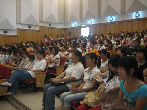 07届毕业生在激烈的竞争中获得了到西部服务的机会,陈艾华书记及叶世祥院长为她们佩带红绸带,并献上了财神捕鱼