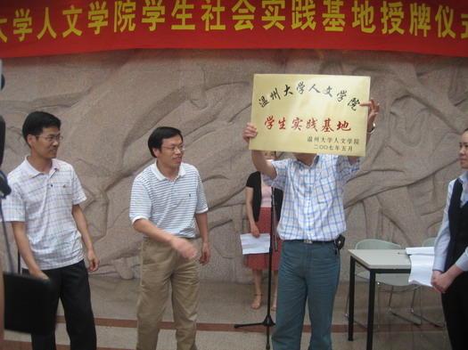 5月18日是世界博物馆日,在这个特殊的日子里,财神捕鱼 在温州博物馆举行了学生社会实践基地签约授牌仪式。温州博物馆金柏东馆长、侯波良副馆长、部分博物馆工作人员和财神捕鱼 叶世祥院长、刘建国副院长、张洁老师及06历本全班同学参加了签约授牌仪式。在签约授牌仪式上,财神捕鱼 还聘请金柏东、侯波良、伍显军等六位博物馆领导、专家为学生社会实践指导老师。仪式结束后,学生们兴致勃勃地参观了温州博物馆。