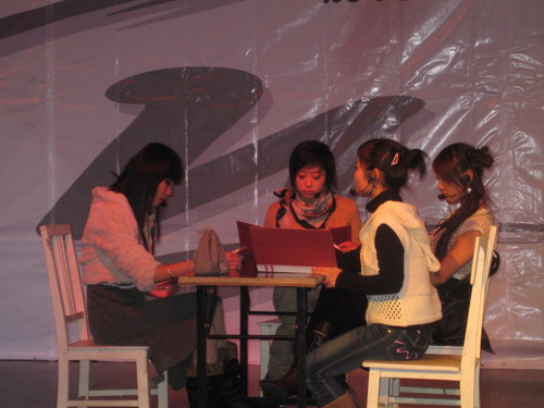 的《最爱的人》等等;也有新编搞笑版的《梁山伯与祝英台》,原创历史剧《“莫须有”罪名》等其他许多类型的话剧。令人欣慰的是,本次决赛参演举目有一半以上剧本是属于原创的。演员们精彩的表现不时博得观众的阵阵掌声,感动处,也不禁纷纷落泪……