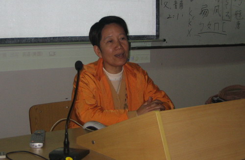 紧接着3点整,马贝加老师继续为同学们讲解论文写作的要点。她从语言学方面分析语言论文写作,主要从词源上进行分析。她 通过“小姐”、“坐”等词语的历史溯源 进行了生动的辨析,极大地拓宽了毕业生语言学方面的毕业论文写作思路。同时,马老师提出:要有论文协作的创新意识,应注重论文对学术方面的推进作用。