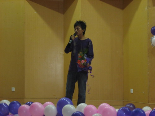 10月22日晚6点半,比赛如期开始,选手们陆续登台,演唱自己的拿手曲目,观众们也十分投入:鼓掌、尖叫、献花、拥抱……纷纷给他们所钟爱的选手以最热烈的支持。当3号选手,来自汉语言文字专业的研究生任翔宇上台演唱《精钟报国》时,现场掀起了一个小小的高潮,大家都被他洪亮的声音和如虹的气势所震撼。他的精彩演出也使他顺利进入了决赛。另一个高潮则是由来自06中本四班的李传锐掀起的,他为大家带来了周杰伦的一首非常有难度的《夜曲》,流利的Rap,华丽的高音,给他赢得了满堂喝彩。毋庸质疑,他也顺利地进入了决赛。除了他们,还有不少选手也给大家带来了很大的惊喜,也许他们并不是最棒的,但可以肯定,他们是最用心的。