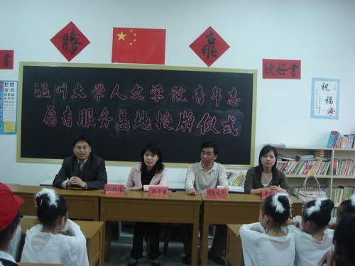 随后,35名志愿者分为若干组,每组各带一个班级,在与孩子接触的过程中,我们感受到他们的热情,感受到他们对知识的渴求,感受到他们想要与人交流的渴望。这些孩子来自祖国的四面八方,是外来民工的孩子,和我们这些居住在当地的孩子很不一样,他们并没有享受同样的义务教育权利,他们需要有人关注,需要有人关心。我们高校的青年志愿者作为一批素质较高,社会责任感较强群体,为人民服务的态度应该更加积极。