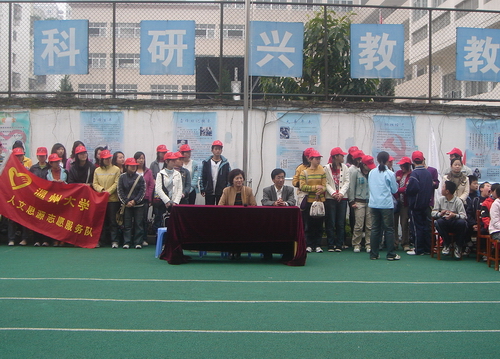 随后,进行了挂牌和旗帜交接仪式,青年志愿者代表郑重地从魏成春老师手中接过了 “人文思源志愿服务队”的牌匾和旗帜,那不仅仅是一种仪式,那更是一种精神在延续。