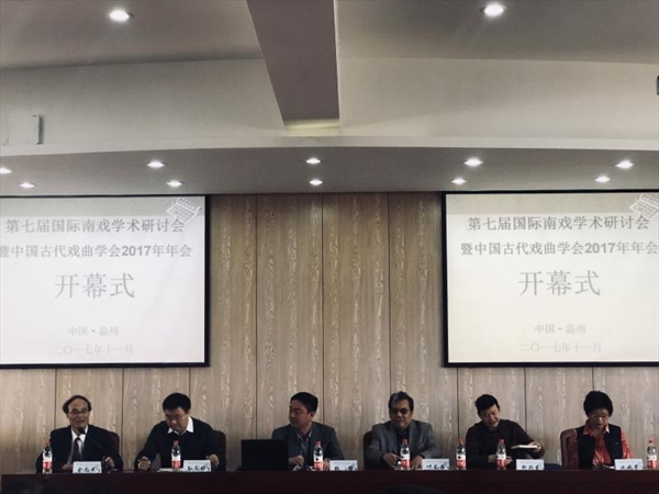 向来宾致以诚挚欢迎。中国人民大学朱万曙教授、日本早稻田大学冈崎由美教授、台湾嘉义大学汪天成教授、台湾成功大学施德玉教授、台湾东吴大学罗丽容教授、澳大利亚悉尼大学石峻山博士等来自海内外80余位戏曲研究专家莅临研讨会。