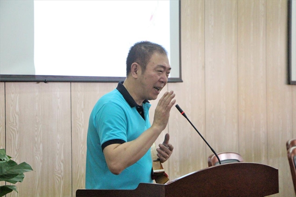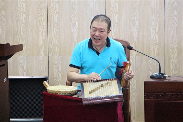 鼓词是一种以鼓、板击节说唱的古老曲艺形式,温州的鼓词艺术尤为著名。陈老师自小学习温州鼓词,是位地道的曲艺艺人。他介绍道,温州鼓词一定要用瑞安话唱,因其有着诗一般的韵脚,好听而且准确。陈老师称,曲艺是说唱的艺术,历史十分悠久,而浙南鼓词是其中很大的剧种,有“北有评弹,南有鼓词”之说。温州传统曲种还有花鼓、莲花等,但已趋失传,而鼓词由于在内容、唱腔等方面积极改进与创新,得以保存和流传。唱鼓词讲究内外五行,从气魄、声音、表演、念白,到内容中所含的民俗文化,都有着很高的要求。讲到兴起,陈老师还现场表演了“武松醉打蒋门神”选段,其精彩的说唱引得同学们目不转睛、掌声不断。“现在像鼓词这样的传统曲艺,年轻听众越来越少,创作者也几乎没有了,未来后继堪忧。所以我们尝试把传统文化搬进校园,希望同学们将其传扬光大。”陈老师如是说。