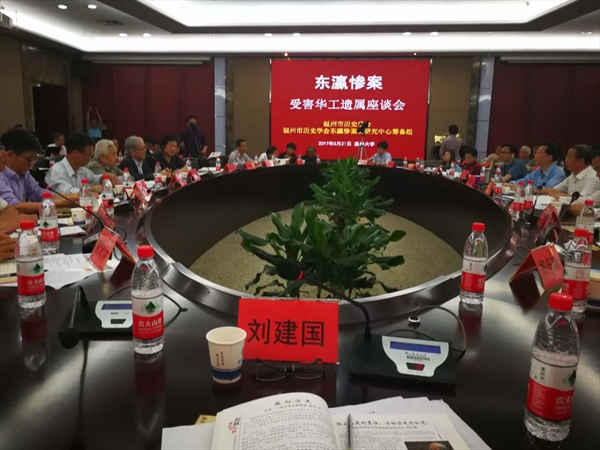 会上举行“温州市历史学会东瀛惨案史研究中心”成立及授牌仪式,市历史学会秘书长夏诗荷宣读《关于同意成立温州市历史学会东瀛惨案史研究中心》的批复,市历史学会会长刘建国授予东瀛惨案史研究中心筹备组组长周江法“东瀛惨案史研究中心”牌匾并代表市历史学会讲话。市外侨办副主任朱玉贵在座谈会上说,“东瀛惨案史研究中心”的成立是去年“1923年关东大地震旅日罹难华工遗属座谈交流大会”以来的一项重要成果,标志着纪念维权活动开始了新的里程。他希望“东瀛惨案史研究中心”理清工作思路,制定工作规划,认真调查研究,扎实推进工作,为丰富温州历史学的研究创造新的模式。研究中心秘书长黄爱盛表示,研究中心今后将继续寻找受害华工遗属、发动历史学者研究相关课题、在高校和博物馆巡展东瀛惨案历史资料、建立“东瀛惨案纪念馆”,让更多人了解这段历史。会上,中日历史研究者先后发表研究报告。温州市侨联副主席林春雷表示,历史研究者有责任还原历史真相、填补历史空白,推动遗属们向日本政府索赔并要求谢罪。全国人大代表郑雪君在会上表示准备给全国人大常委会写一份报告,反映相关问题。市历史学会常务副会长张洁做会议总结,他认为这次会议具有开拓性意义。