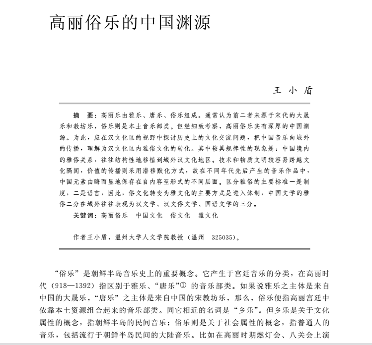 通过对高丽俗乐乐器的考察,揭示乐器传播过程中移植文化身份的现象,也揭示高丽人进行乐器选择的标准;通过对高丽俗乐曲的考察,阐明高丽俗乐的功能、承担者及其表演方式;通过对《高丽史•乐志》所记载的三国乐曲的考察,揭示三国俗乐曲在受容中国文化方面的特点,以及“俗乐”概念在朝鲜半岛成立的缘由。