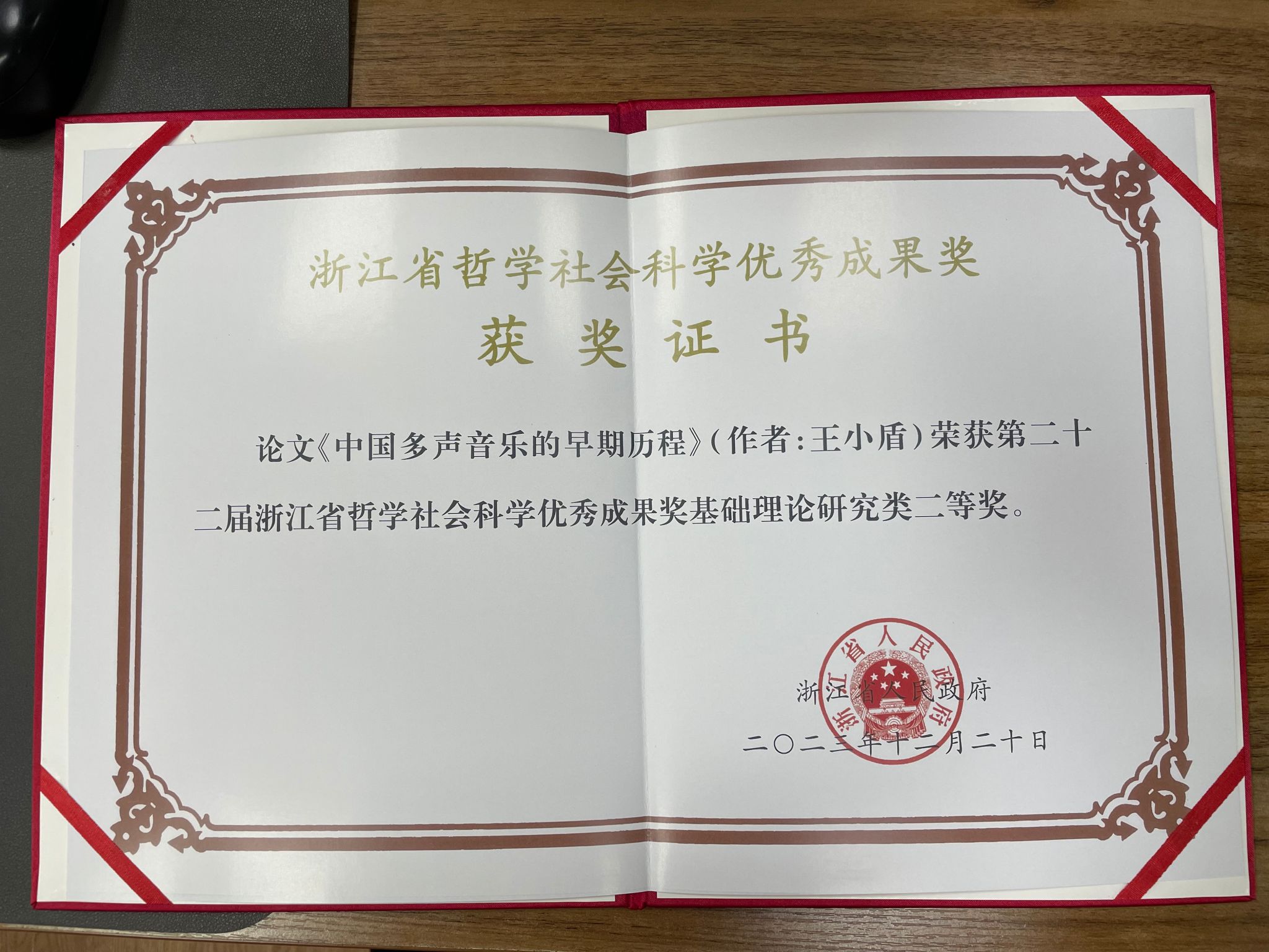 奖励名称:浙江省第二十二届哲学社会科学优秀成果奖
