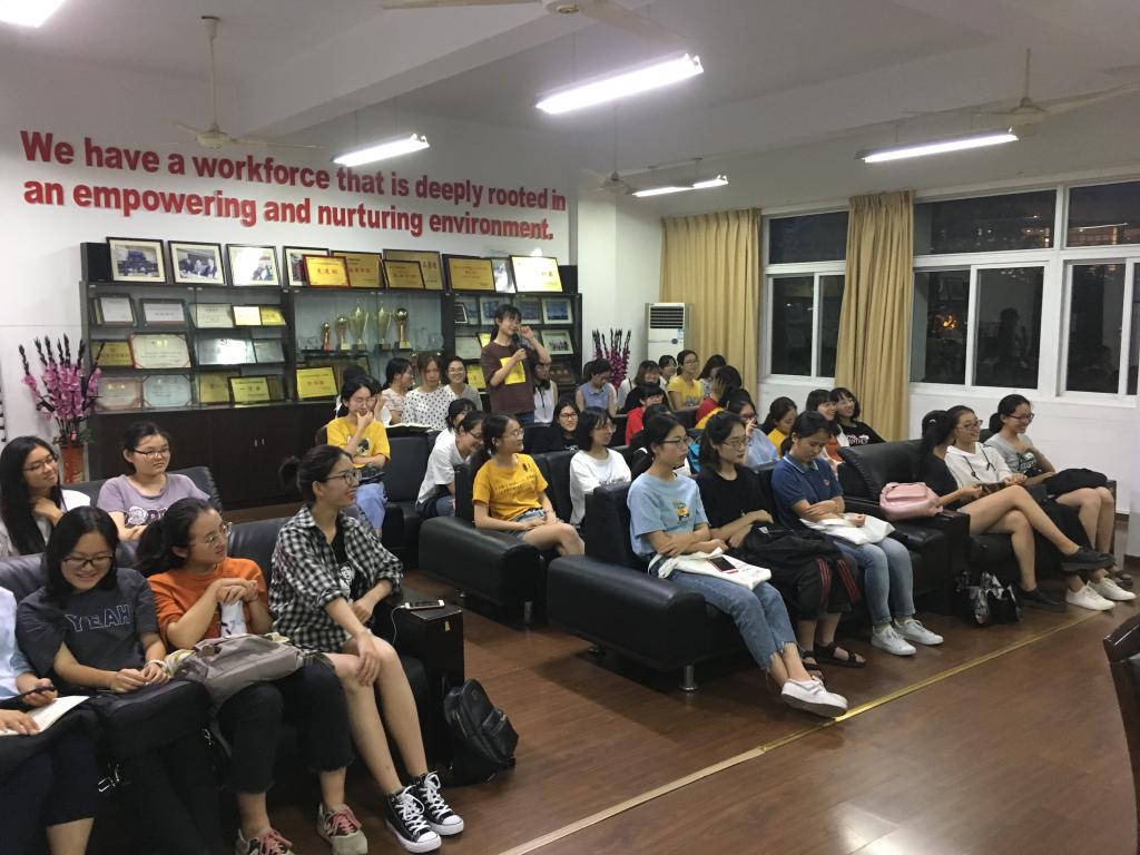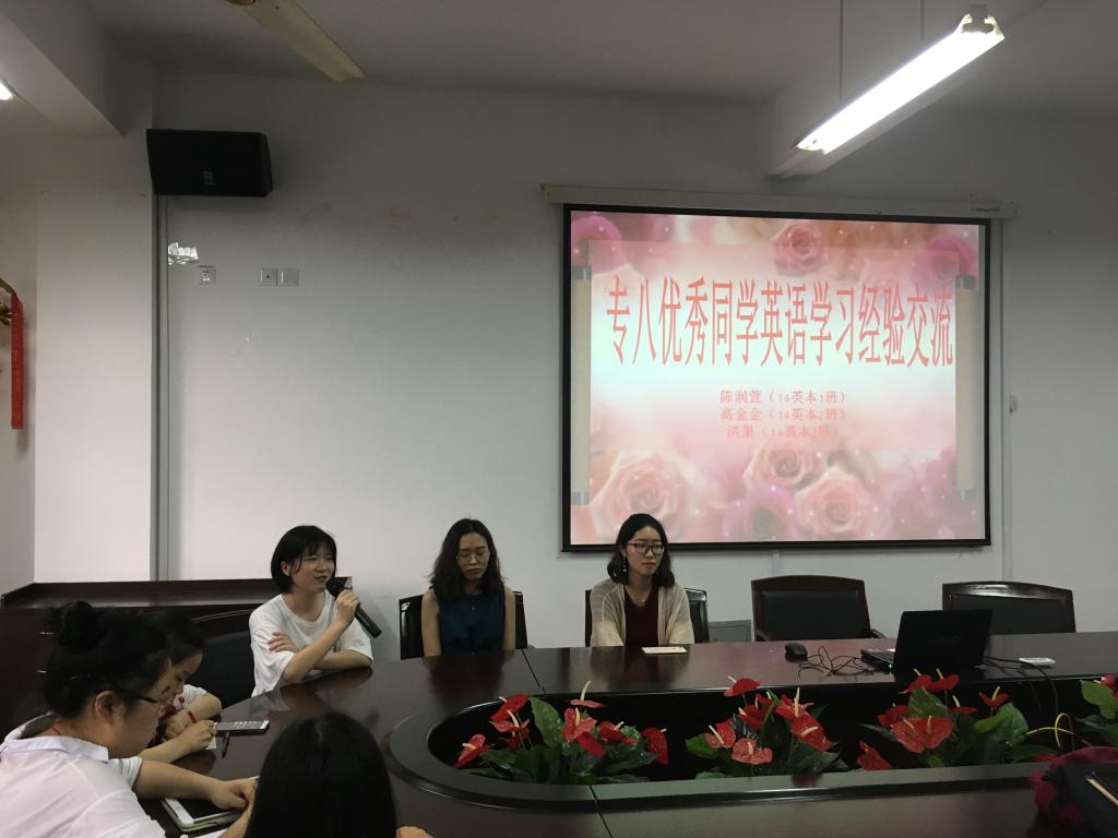 2018年6月19日晚,在外语楼212教室,财神捕鱼 外语系和翻译系举行2018年第8场“外语类专业专四专八辅导讲座”,讲座邀请了财神捕鱼 2018年专八成绩优秀的陈润萱(14英本1班)同学、洪果(14英本2班)同学和高金金(14英本2班)同学与大家交流英语学习经验。会议由外语系主任杨开泛博士主持。