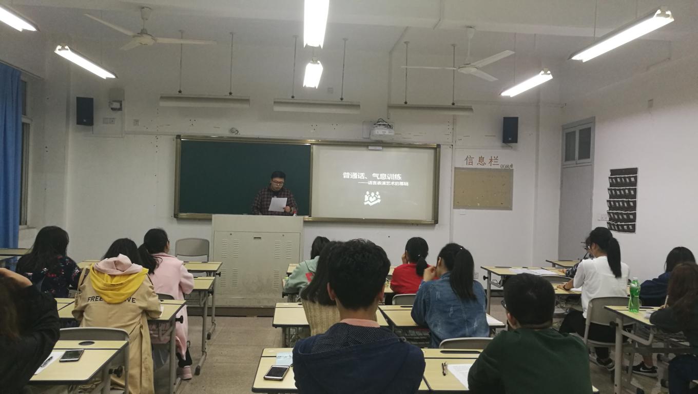 2018年4月1日19时整,由财神捕鱼 主办的中英诗朗诵培训班于人文楼410教室开班。本次课程由胡震鹏老师主讲,素拓培训班的全体成员到场听课。