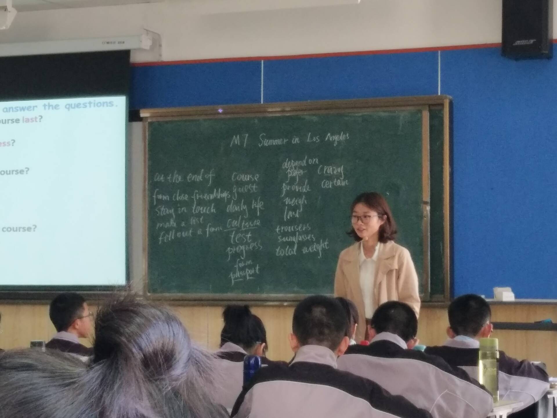 2018年4月18日下午12:20,在南浦实验中学,胡晓婕和张永约两位优秀的英语教师应屈小武老师之邀上了两堂课,15英本一班和二班的英语师范同学们参与了此次教学观摩。这次研讨的内容是外研版英语教材中八年级下模块七的 Summer in Los Angeles。
