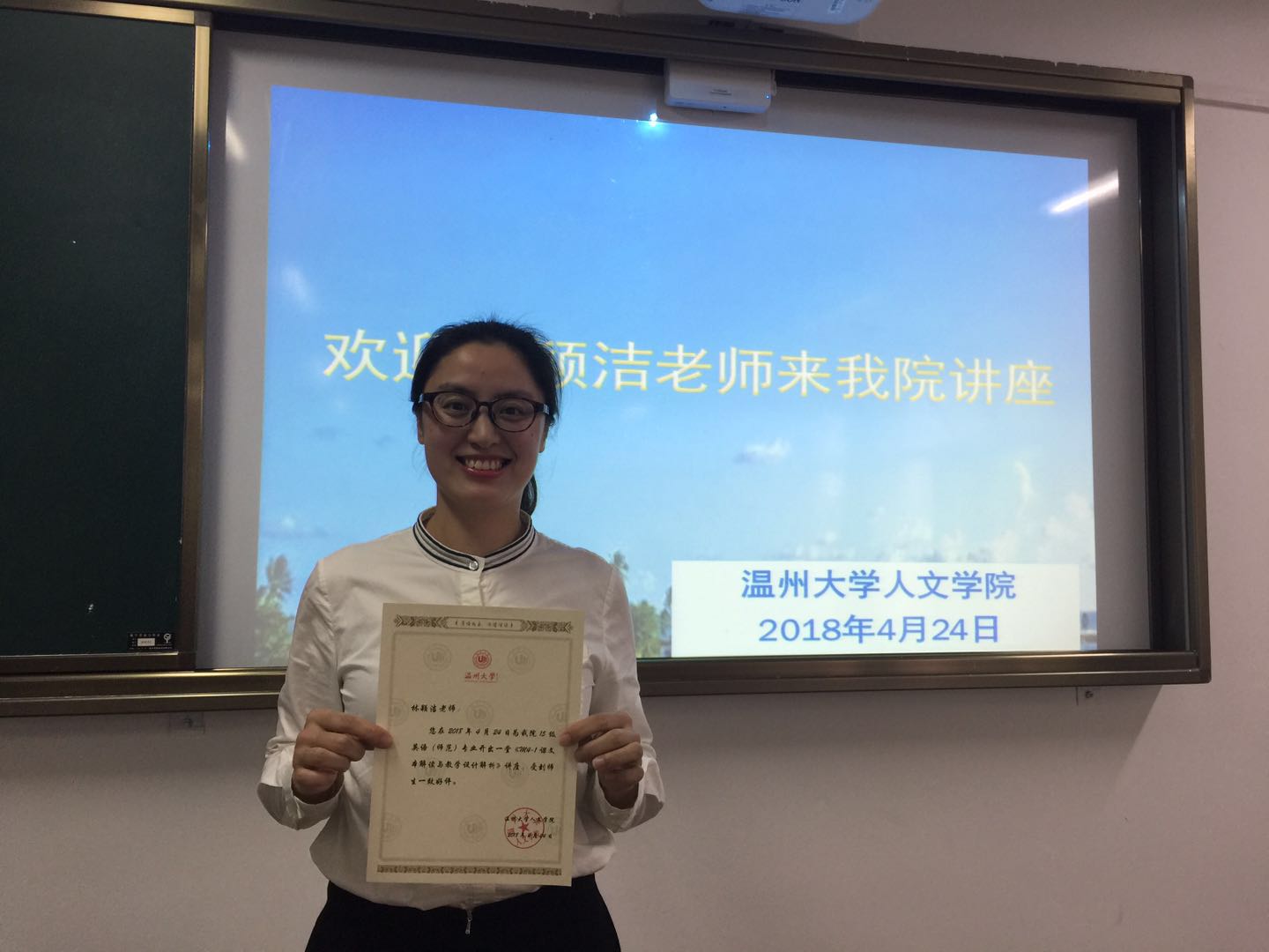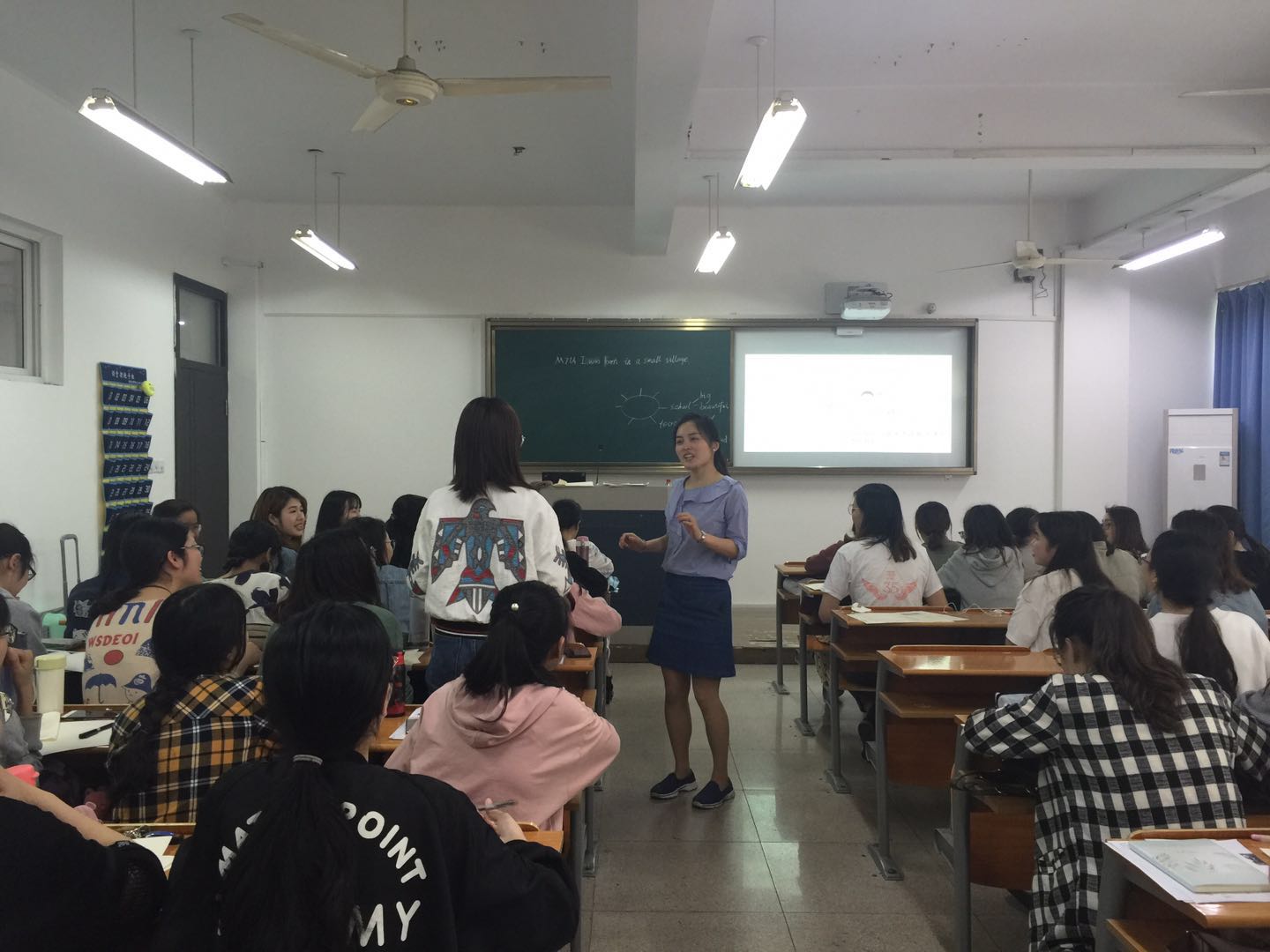 首先,温州仙岩中学的邹丽娟系统地向同学们展示了如何根据不同的教学维度对教学活动进行观察和评价,指导同学们要从教育本身出发,从学生需求出发,从课标出发进行教学。下午,来自温州外国语财神捕鱼 的林颖洁老师为大家带来“外研社M4U1课文本解读与教学材料分析”的讲座。林老师激情澎湃的讲话,把今天的讲座推向了高潮,让同学们深刻地感受到了培养思维品质在英语教学中的重要性。