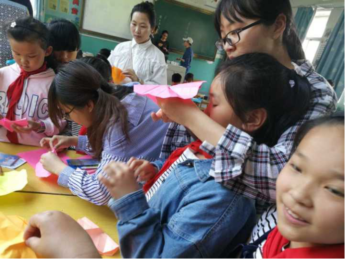 本次活动分为三个环节,按时间顺序分别为游戏环节、手工环节以及授课环节。由于受到时间限制,本次活动各环节的时间基本上都在半小时左右。游戏环节中,志愿者们选择了五毛和一块游戏,每个男孩代表一块,每个女孩代表五毛,由一个志愿者报出需要组成的金额,孩子们进行计算并报团。通过这个游戏,活动气氛得到活跃,孩子们也在快乐的游戏中懂得了团结就是力量的道理。手工环节,志愿者们分为两个队伍,一队教折玫瑰花,一队教折千纸鹤,孩子们根据喜好自由选择加入哪个队伍。在这个环节中,孩子们认真按照志愿者教授的折纸步骤完成了一部分的折纸,并且在遇到困难时及时主动向志愿者寻求帮助。通过折纸,孩子们从上一环节的激动中平复了心情并且这个环节培养了孩子们的专注和耐心、使孩子们懂得动手创造。最后一个授课环节,由于志愿者们的专业是英语师范,因此志愿者们准备了一堂简单的英语课—教孩子们十二生肖的英文,并且进行了简单的问答和奖励。在这一环节,孩子们的积极性非常高,记住了自己生肖的英文单词,问答环节也很主动。