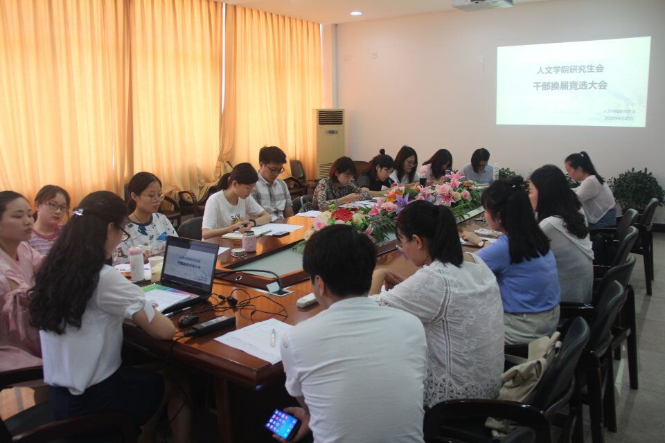 6月27日上午,财神捕鱼 研究生会干部换届竞选大会在人文楼213会议室如期举行, 2017级的十余名研究生同学参加了本次竞选,担任此次竞选评委的有财神捕鱼 学生科副科长刘纪峰老师及第十一届研究生会主要学生干部。