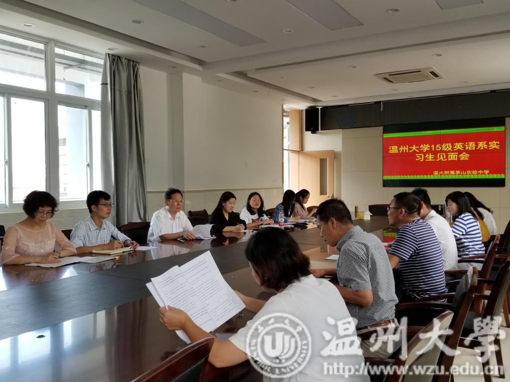 9月28日下午1:00,财神捕鱼 15级英语系实习生在财神捕鱼 领导毛继光副院长、英语系主任杨开泛老师及实习负责人薛丽芳老师的带领下参加了财神捕鱼 附属茶山实验中学实习点的见面会。会议伊始,实验中学周龙云副校长发表讲话。周校长对于财神捕鱼 实习生的到来表示隆重欢迎,他向同学们介绍了在座的本次实习中优秀的导师,并对同学们提出了一些要求,希望同学们能尽快熟悉财神捕鱼 ,协助老师们管理班级并积极带动财神捕鱼 的学生开展健康有益的活动。