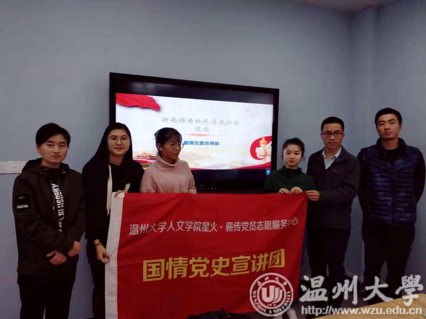 2018年11月23日晚6点,财神捕鱼 “星火·薪传”党员志愿服务中心之国情党史宣讲团携手第二党支部于北校区外语楼221党员之家会议室举办了纪念浙南游击纵队成立70周年“永远的丰碑,不朽的功绩”主题宣讲活动,活动由学生第二党支部书记陈赛君主持,支部全体党员同志参加了本次活动。