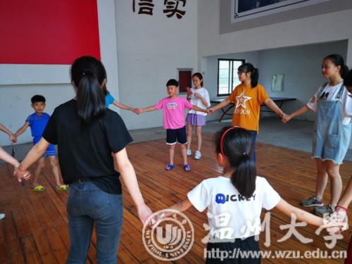 早上7点半,天空还飘着蒙蒙细雨,不过志愿者们还是打着伞,早早的在指定地点集合。一个半小时后,志愿者们到达了这次新青年下乡的目的地-坐落在美丽雁荡山下的上灵岩文化礼堂。刚下车,志愿者们深深呼吸了几口山间清新的空气,目之所及,哪里都是绿的,山头在缥缈的雾中若隐若现。不过志愿者们没有沉迷于欣赏美景,而是很快开始了活动。为了帮小朋友们找回童年的乐趣,志愿者精心准备,松鼠搬家、狗皮膏药、猫抓老鼠、老狼几点了等等的经典游戏重回小朋友们的生活中,也让大学生们重温童年乐趣。整洁的文化礼堂里充满了欢快的笑声,蔚蓝的天空下跳跃着敏捷的身影,稚嫩的脸上洋溢着纯粹的笑容。欢乐的时光总是短暂的,本次活动在游戏中走向了尾声。