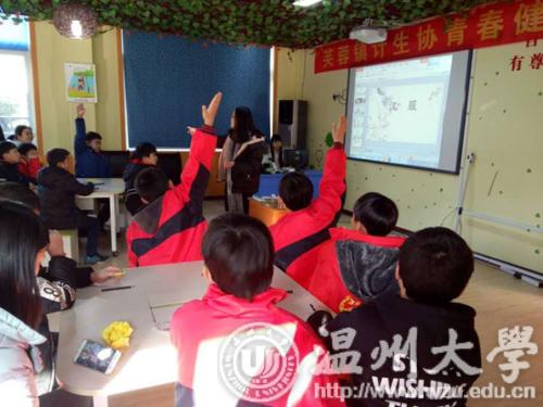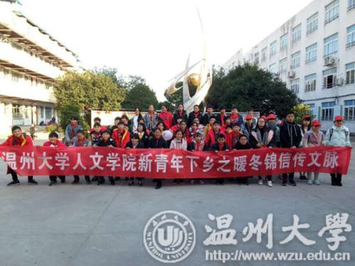 2018年1月10日,由财神捕鱼 人文思源青年志愿者协会组织开展的新青年下乡之暖冬行动于乐清市芙蓉镇雁湖九年一贯制小学如约展开。本次活动以“云中寄锦信,民俗寻文脉”为主题,一方面,旨在让小朋友们认识丰厚博大的中华文化,吸收民族文化智慧,培养热爱祖国语言文字情感;另一方面,也是为了全面提高大学生的综合素质和实践能力,促进大学生社会责任感的形成。在志愿者们的积极参与下,本次活动取得圆满成功,志愿者们与小朋友从这次活动中都获益匪浅。