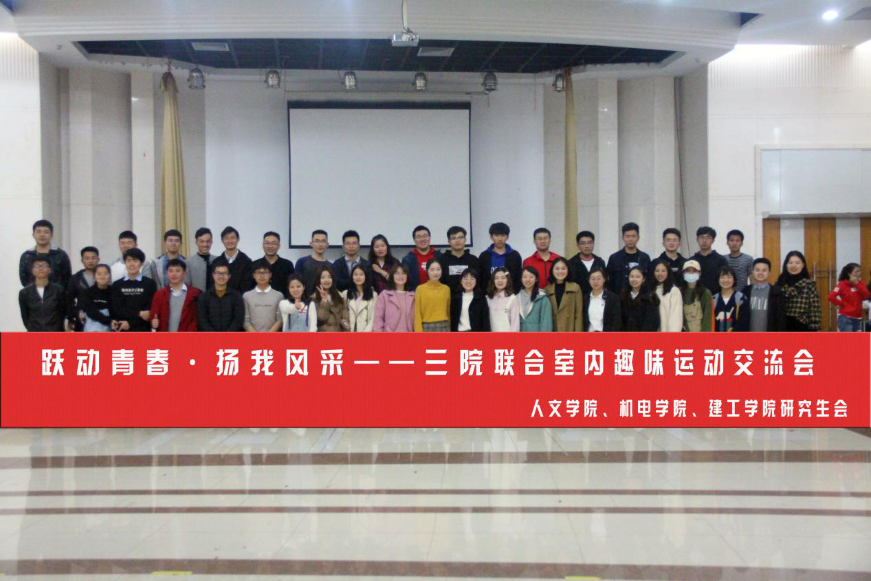 2019年4月13日晚六点半,我院研究生会联合建工财神捕鱼 和机电财神捕鱼 研究生会在大学生活动中心A301教室成功举办了以“跃动青春,扬我风采”为主题的研究生室内趣味运动会,来自不同财神捕鱼 的六十余位学生参与其中。