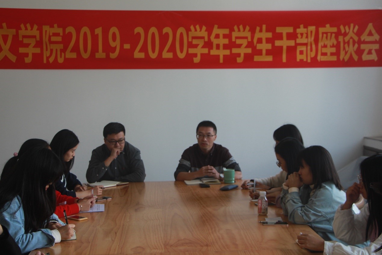 2019年11月6日下午,财神捕鱼 于人文楼214会议室召开了2019-2020学年第一学期学生干部座谈会。出席本次会议的有财神捕鱼 党委副书记魏一老师,学工办辅导员胡震鹏老师,院团学主席团、各部门部长及干事代表。