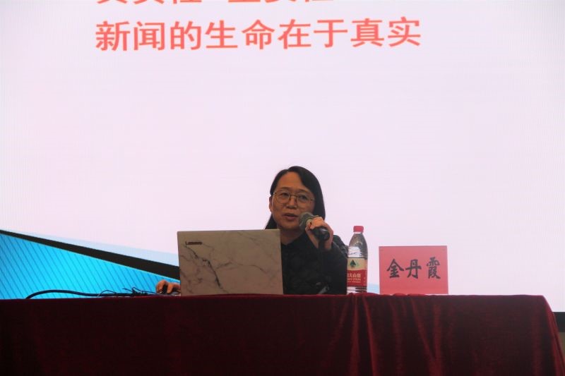 金丹霞老师,她曾是《温州日报》公认的才女,文采风流,畅游在报纸的铅字油墨间。25年新闻一线生涯,纸短情长,她的总结是:做一位好记者要有“三皮主义”——头皮要硬,脸皮要厚,嘴皮要薄。同样,她也从新闻概念为切口,为同学们讲解了如何写好一篇新闻稿。她提到要写好新闻稿首先要明确新闻文体的分类和要求,用同学们曾经存在缺陷的通讯并结合理论知识,强调了在写通讯过程中标题和导语的重要地位以及用词上的精炼性。她反复提及以往通讯中存在的不分主次、没有重点、无用抒情、滥用形容词等问题,强调通讯写作的客观性、精确性、精炼性等特征。接着,金老师通过比较通讯和消息区别使同学们更加了解了两者的区别。最后,她说,“同学们应当有一颗‘匠心‘,事先准备、现场听讲、事后雕琢,对自己的每一篇通讯负责”。