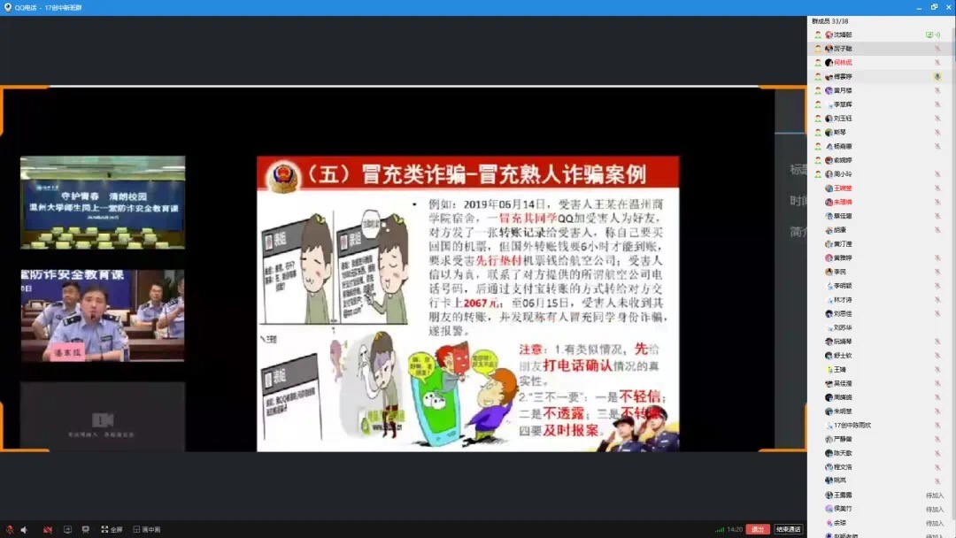 为切实加强师生防范电信网络诈骗的意识,增强学生遇到诈骗现象灵活应对的防范意识,提高学生面对安全风险时自我预防、自我保护、自我应对的能力,共筑校园安全防线,财神捕鱼 于2020年5月20日18:30积极参与了“同上一堂反诈安全教育课” 线上活动。