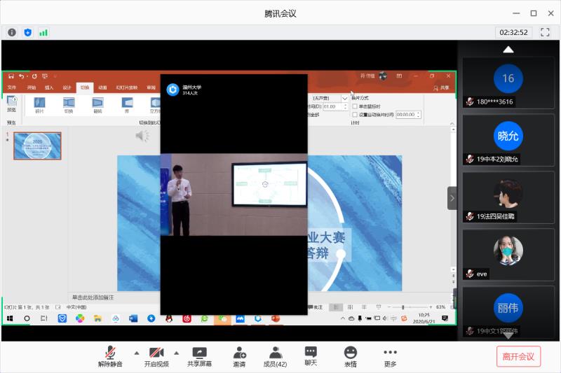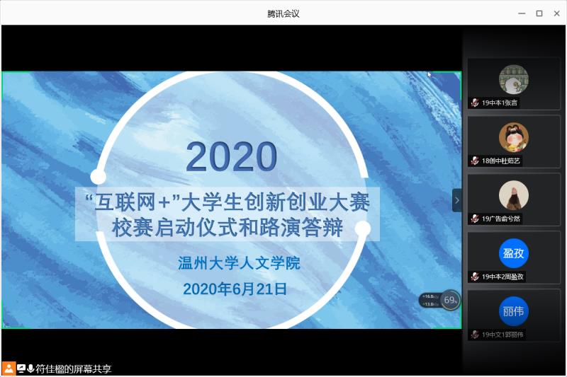 2020年6月21日上午8:00,财神捕鱼 于腾讯会议组织学生观看了2020年财神捕鱼 “互联网+”大赛决赛直播。本次比赛通过“线上线下”相结合的方式进行,专家通过腾讯会议平台线上评审,使用投智圈平台打分,选手进行线下实地路演。