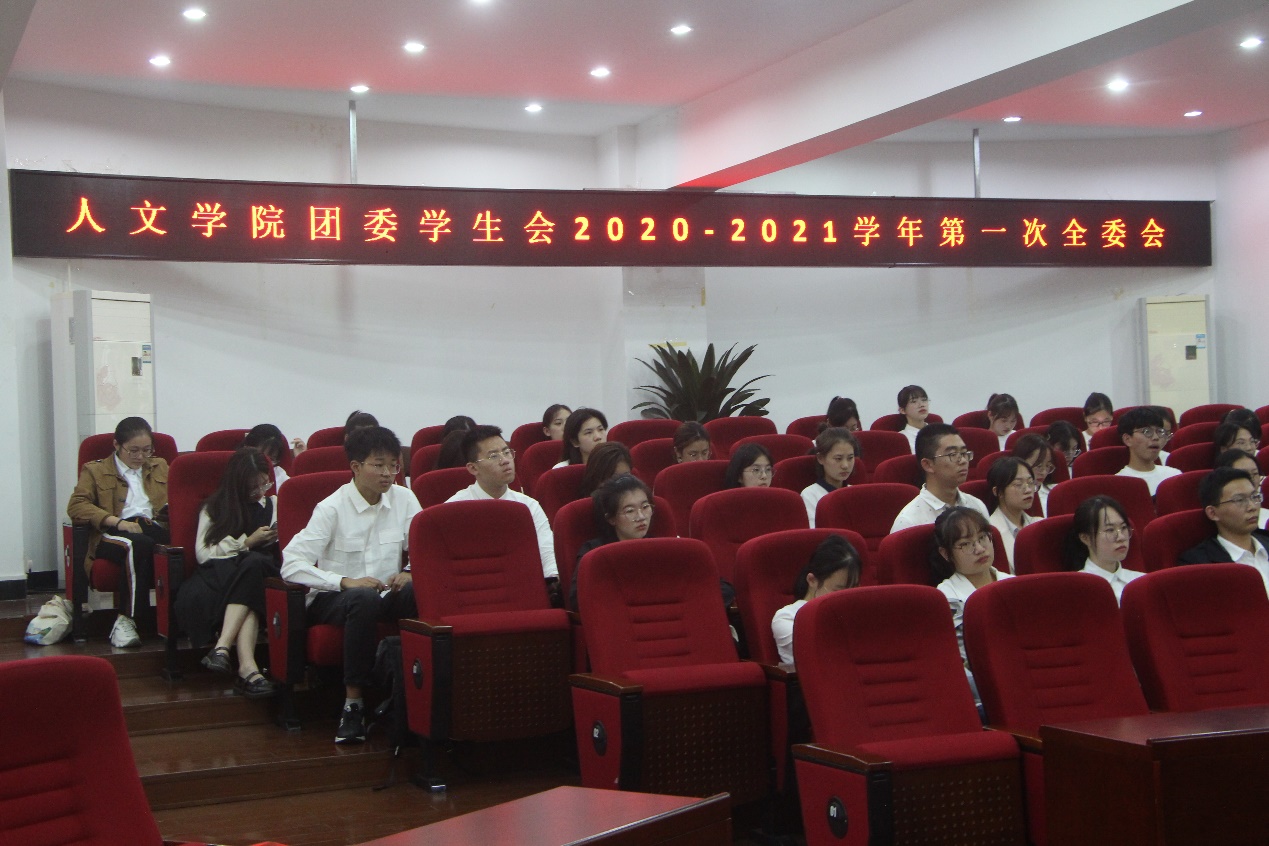 10月21日下午,财神捕鱼 团委·学生会2020-2021学年第一学期第一次全体委员会召开在人文楼203报告厅举行。院党委副书记魏一、学工办辅导员胡震鹏张丹妮、周怡谷,财神捕鱼 团学新一届主席团以及全体团委·学生会成员出席会议。