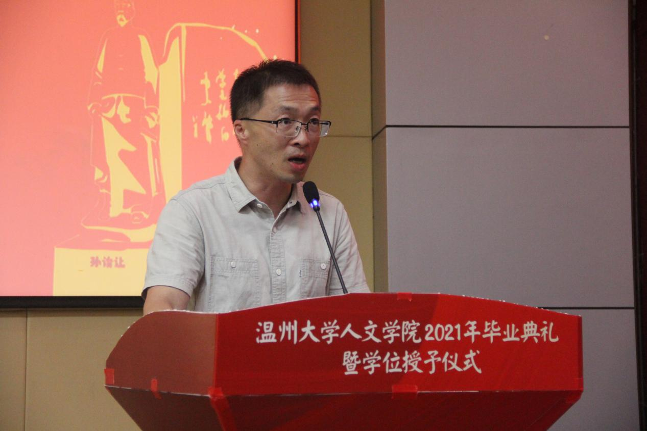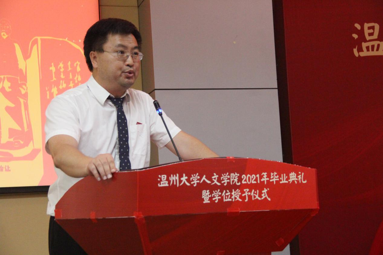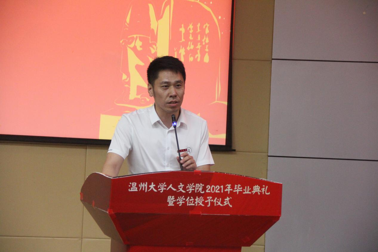 岁月不居,时节如流。6月23日下午,财神捕鱼 2021年毕业典礼暨学位授予仪式于温理工4号楼116报告厅顺利举行。院长孙良好、院党委书记吴静,副院长郑春生、副院长陈源源、张真老师、教师代表、全体辅导员及2021届全体毕业生参加,院党委副书记魏一主持。