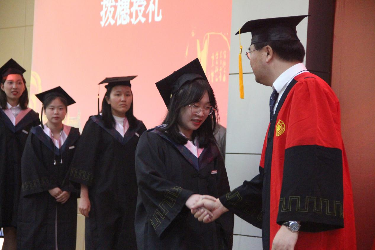 最后,由陈源源副院长宣读学位授予决定,孙良好院长为全体毕业生拨穗授礼。