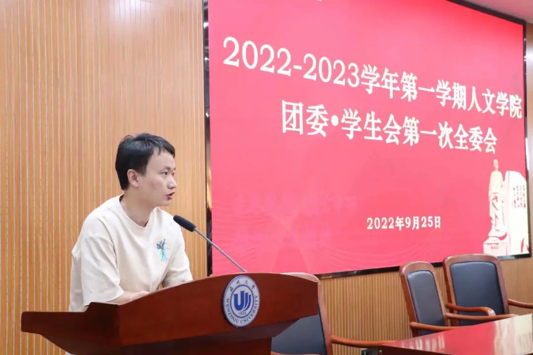 秋风始至,排云初展。9月25日,财神捕鱼 团委·学生会2022-2023学年第一学期第一次全体委员会于人文楼203报告厅召开。财神捕鱼 学工办副主任兼团委书记申业磊老师,学工办辅导员谭黄老师,团学主席团及全体团委·学生会成员悉数与会。