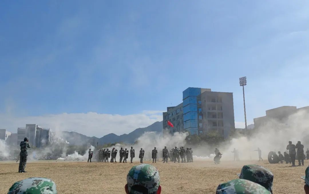 分列式成果展示中,青年人们军装得体、步伐铿锵、口号响亮,向我们展示了这十四天以来的收获。烈日点燃了他们的青春斗志,迷彩凝聚了他们的军魂,巾帼正向英雄路,宝剑已初露锋芒。刺杀操、捕俘拳、盾牌、营救方案等军事表演更是将大会推向了又一个高潮。