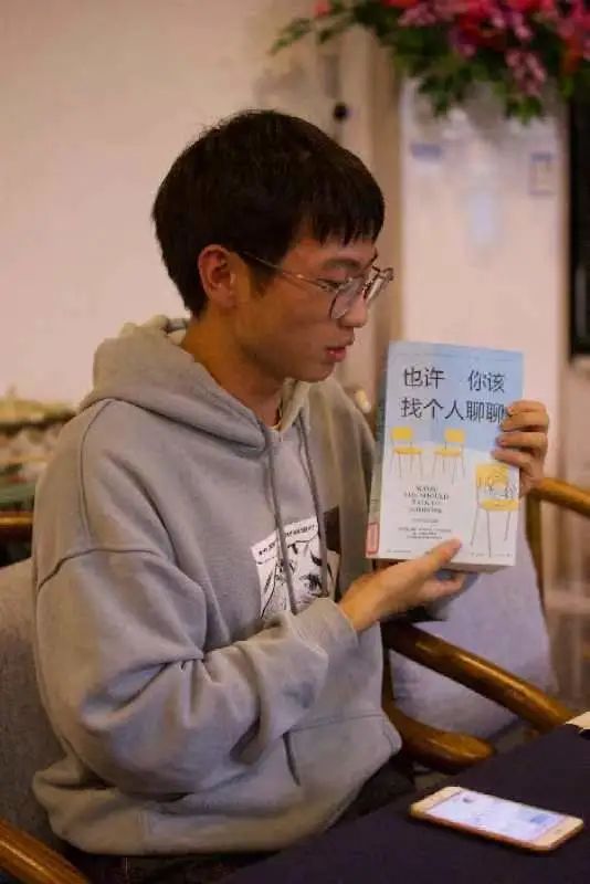 2022年10月19日18:30,第十一期“罗山人文沙龙·青阅汇”在北校区人文楼一楼众创空间如期召开。主讲人19级邓宇龙同学为听众介绍了《也许你该找个人聊聊》。本书中作者自己作为心理咨询师因难以解决自己人生挫折,转而向另外一位咨询师寻求帮助的经历。与此同时,她又在接待着新的几位来访者,与他们发生了许多故事……